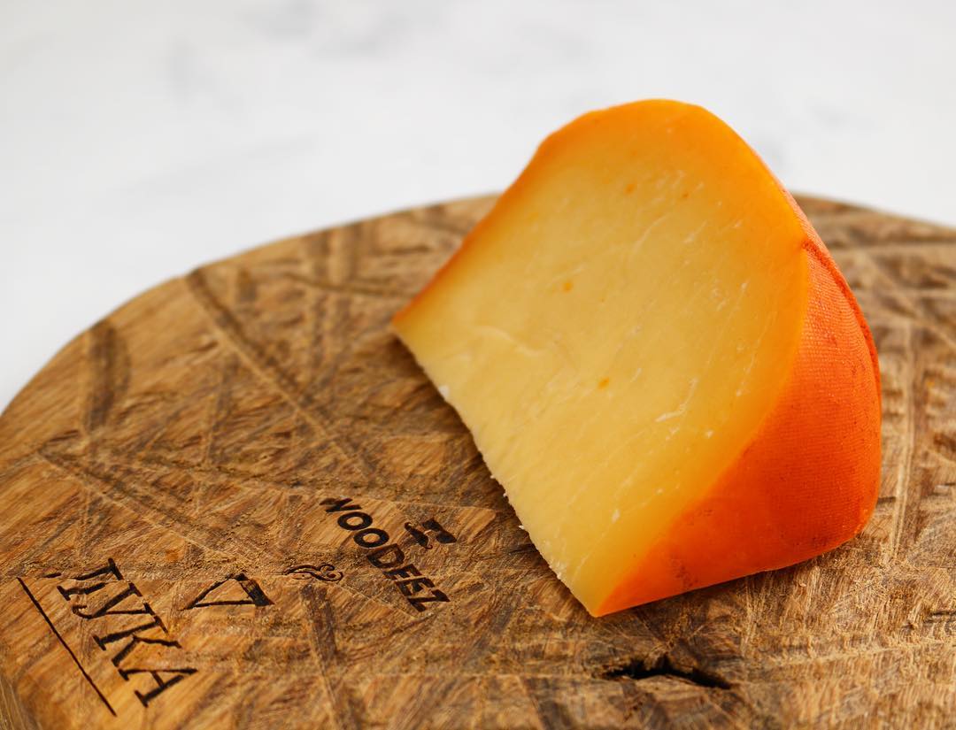 Состав: нормализованное пастеризованное молоко, мезофильная закваска, пищевой краситель Аннато, 10% раствор хлорида кальция, фермент микробиального происхождения, соль, паприка.