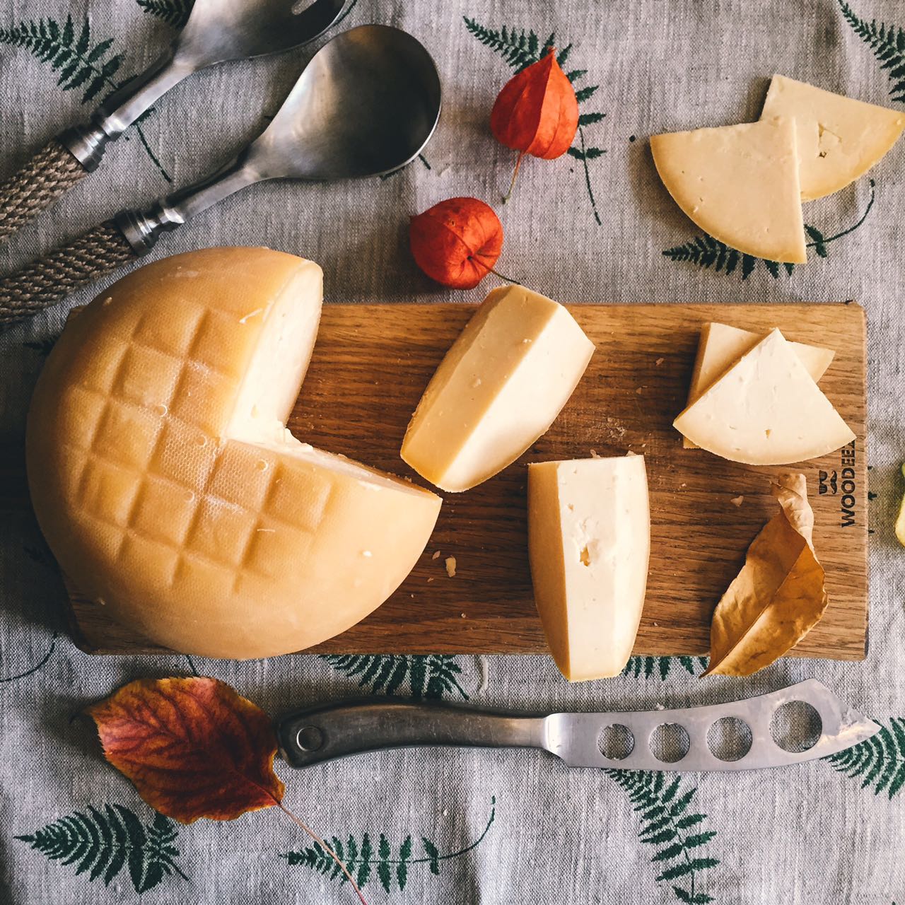 Сыр полутвердый, головка шарообразная с приплюснутыми краями весом ±2000 грамм